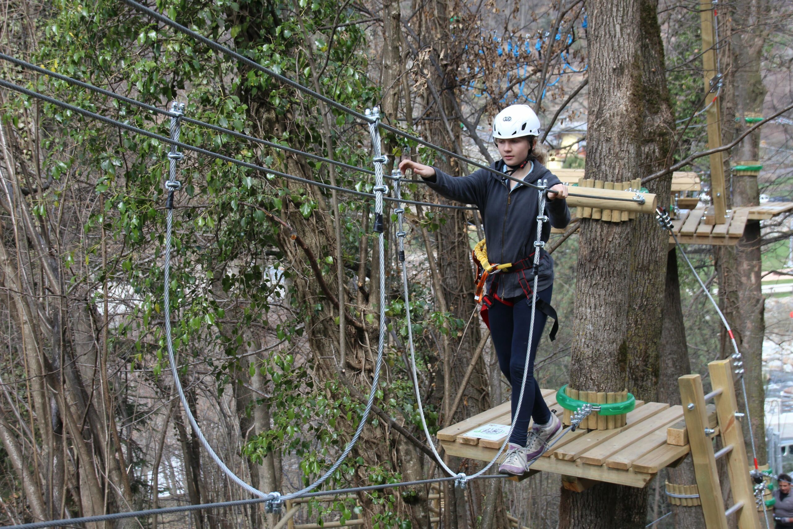 Percorso Verde (dai 6 anni): Ideale per chi vuole affrontare l’altezza in modo graduale. Si sviluppa a 1,5 metri di altezza con 7 piattaforme e 6 attività aeree, concludendosi con una zipline su rete.
